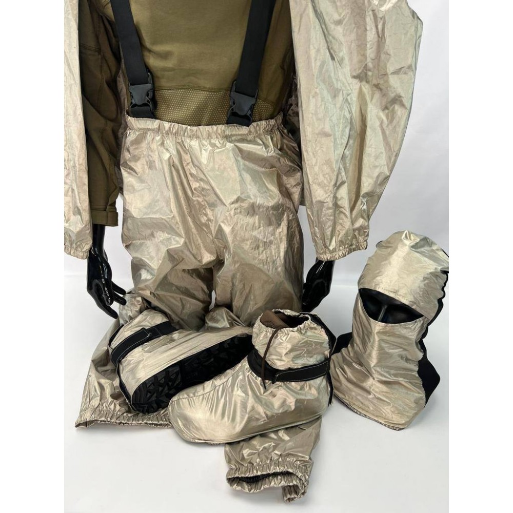 Комплект "Невидимка" изготовлен из 100% полиэстера с специальным экранирующим покрытием. Этот набор разработан для скрытия теплового излучения человека от тепловизионного оборудования как на земле, так и с использованием беспилотных воздушных аппаратов на расстоянии не менее 100 метров. Чем дальше находится объект, тем эффективнее работают изделия комплекта "Невидимка". Эти комплекты также можно использовать в теплое время года.